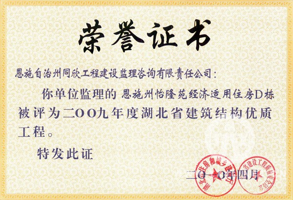 2009年度湖北省结构优质工程怡隆苑经济适用住房d栋